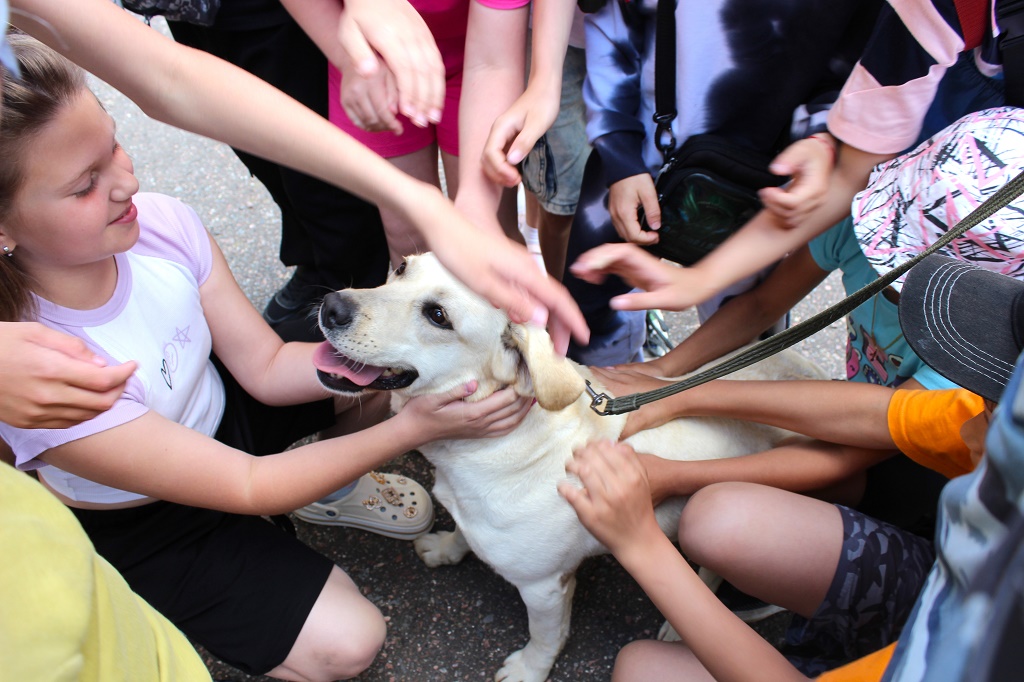 Сотрудники Центра кинологической службы УМВД России по Дмитровскому г.о. и члены Общественного совета Олег Белоусов и Валентина Лобазова в рамках акции «Каникулы с Общественным советом» посетили детский летний лагерь.