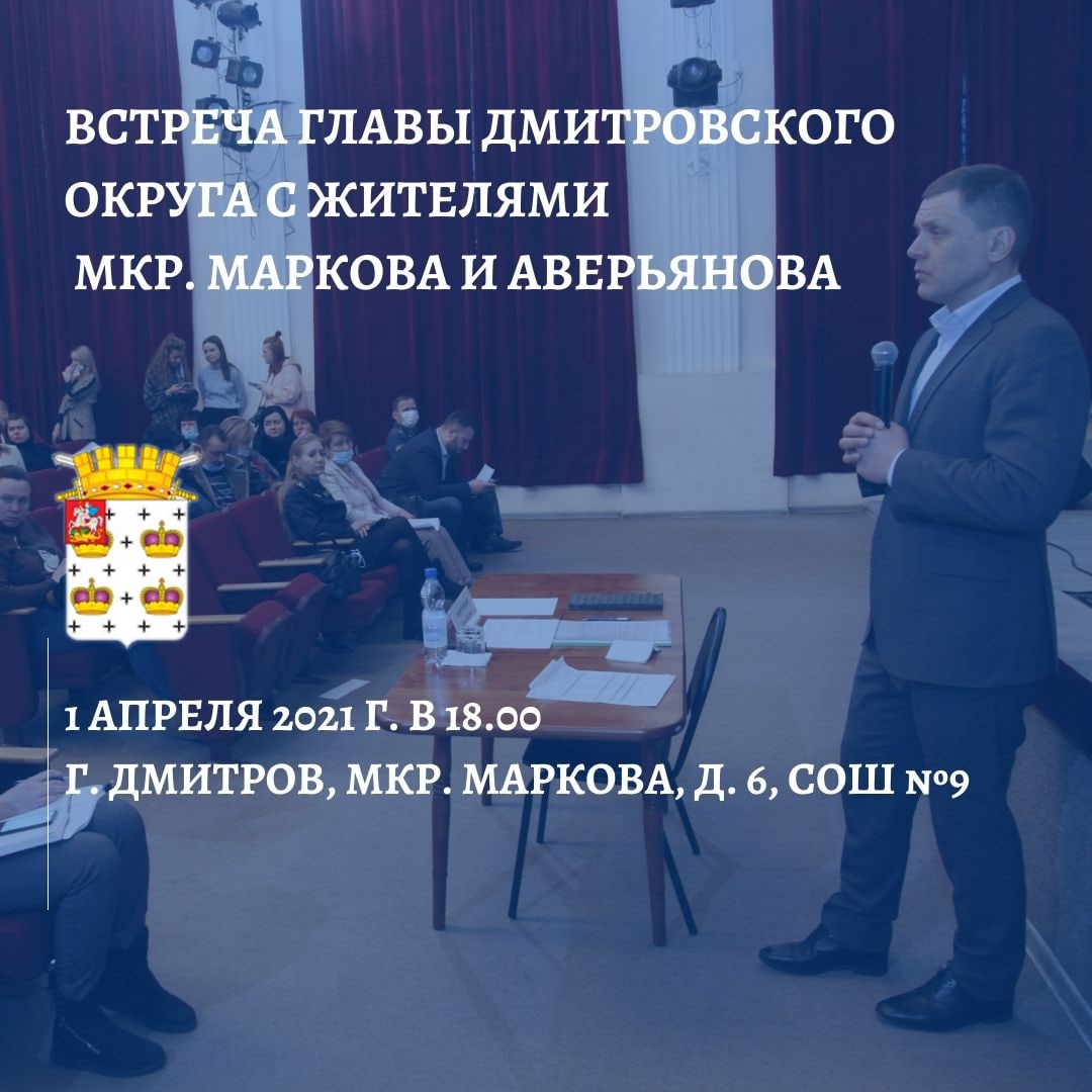 1 апреля, в четверг, глава Дмитровского городского округа Илья Поночевный проведёт встречу с жителями мкр. Маркова и Аверьянова города Дмитрова.
