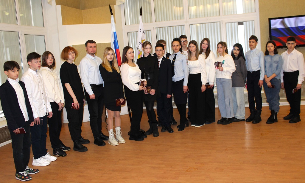 Праздничная церемония вручения паспортов юным жителям округа, достигшим 14-летнего возраста, открылась гимном Российской Федерации. Юноши и девушки в этот день получили главный в жизни документ — паспорт гражданина Российской Федерации.