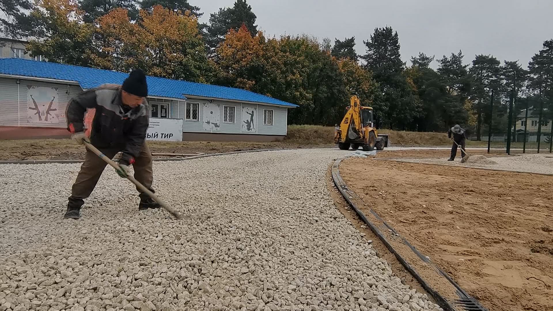 Сотрудники подрядной организации обновляют спортивное ядро стадиона в мкр ДЗФС — футбольное поле и беговые дорожки. Работы ведутся по региональной программе «Мини-стадион».