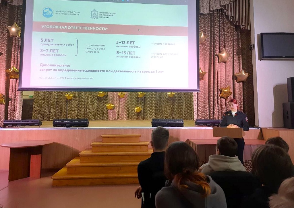 Сотрудница полиции довела до слушателей статистику аварийности, рассказала о причинах возникновения дорожно-транспортных происшествий, их последствиях. Молодым людям были показаны тематические видеоролики.