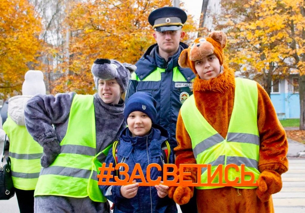 Сотрудники Госавтоинспекции, в рамках Раунда, объединились с инициативной группой родителей и креативными представителями Дома культуры «Созвездие», чтобы напомнить пешеходам о важности соблюдения ПДД.