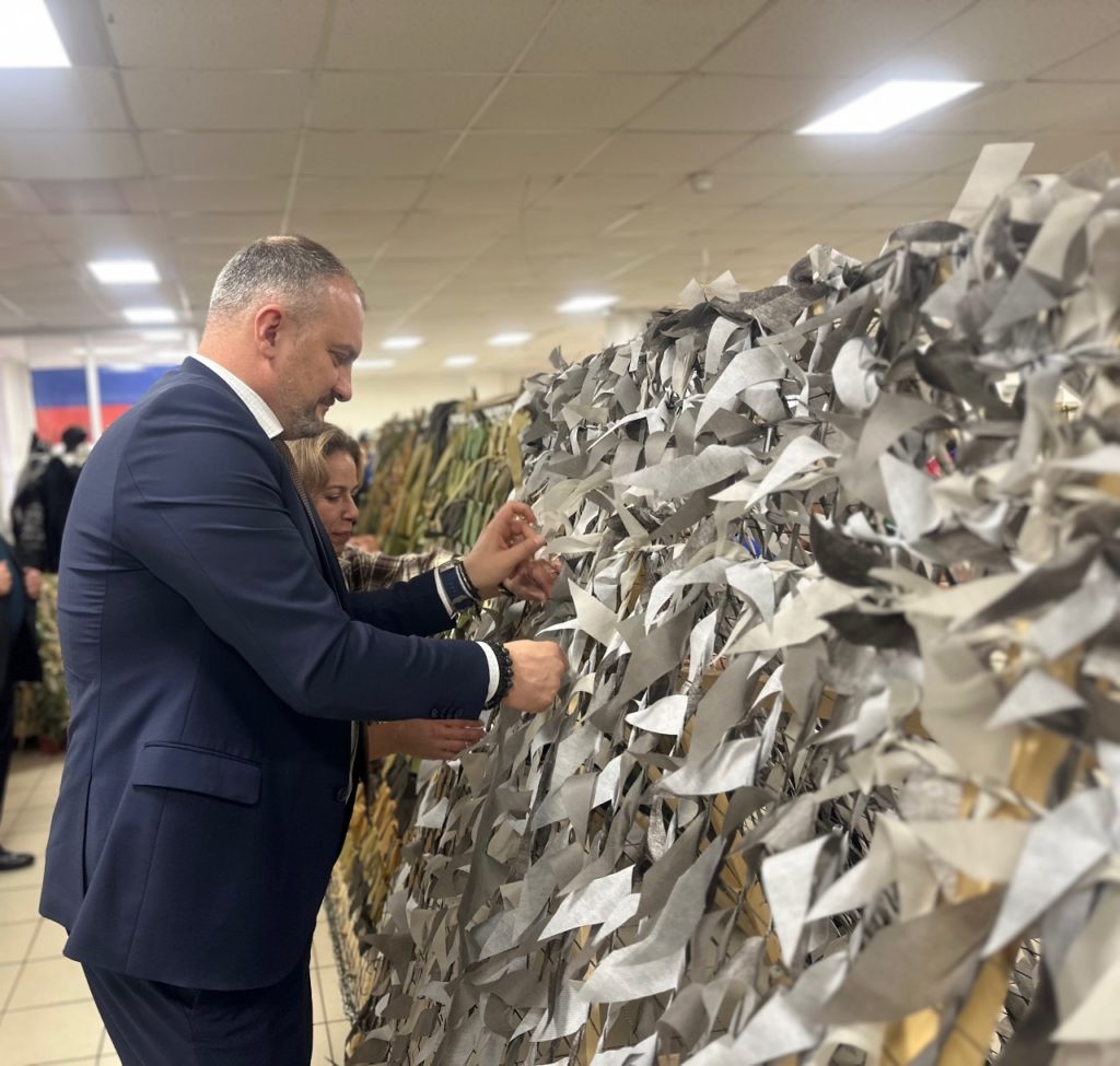 Добровольцы ежедневно занимаются плетением маскировочных сетей и сборкой посылок для наших военнослужащих. Михаил Шувалов лично попробовал освоить технологию плетения сетей, признав, что это требует особого мастерства. «Каждый своими руками приближает Победу», — подчеркнул он.