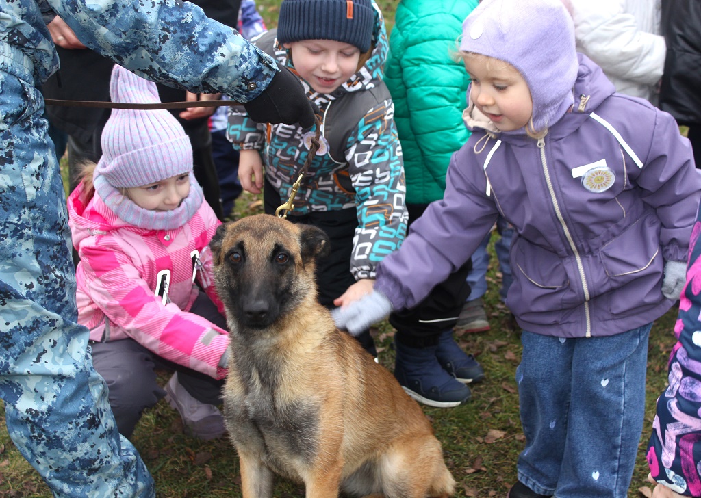 Дети осмотрели вольеры с собаками, увидели, как питомцы выполняют команды, задерживают условного правонарушителя.