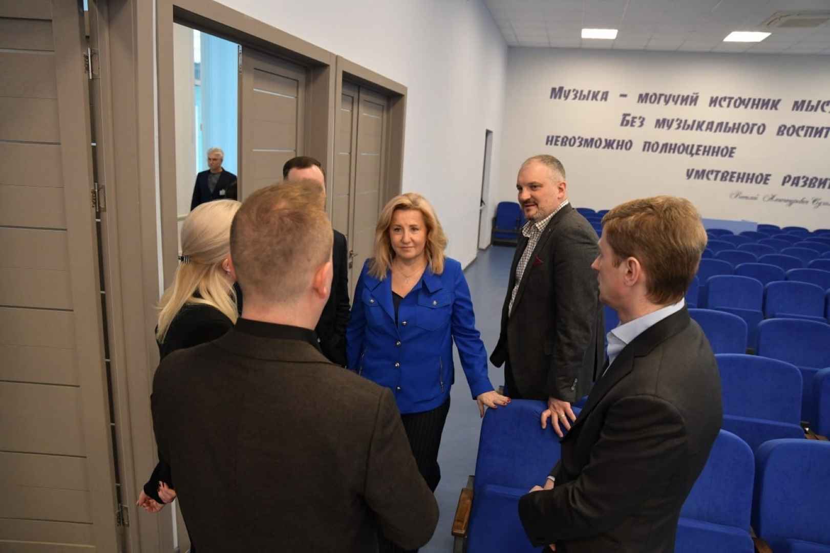Муниципальный координатор партпроекта «Культура малой Родины» Ирина Костышина провела для парламентариев экскурсию по обновлённым пространствам. Гости осмотрели учебные аудитории, оснащённые современной мебелью и интерактивным оборудованием, а также концертный зал.
