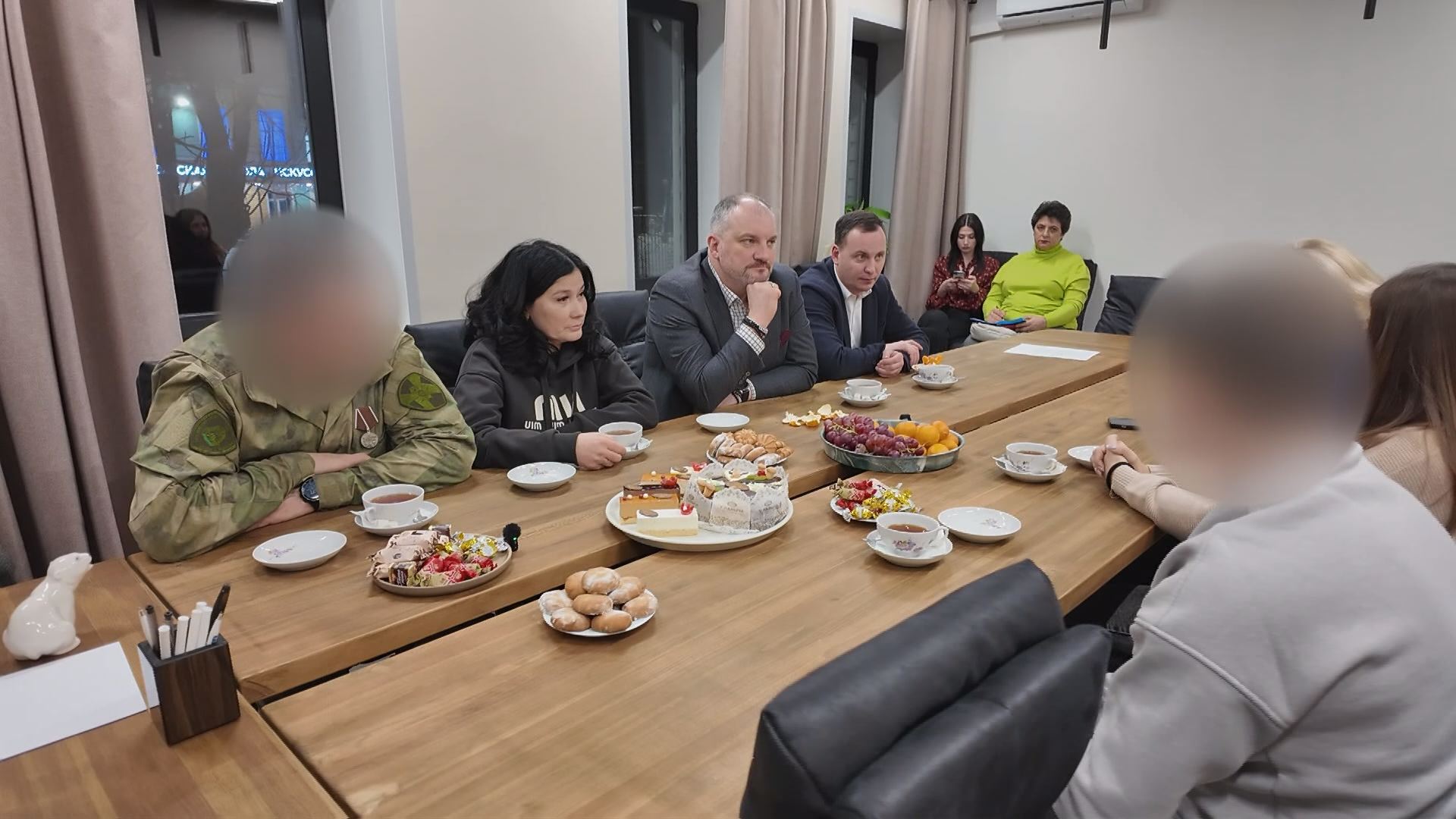 Бойцы специальной военной операции с позывными «Корнет» и «Шрам» вместе с супругами были приглашены в местное отделение партии «Единая Россия», где встретились с Главой Дмитровского муниципального округа Михаилом Шуваловым (ТГ @MN_Shuvalov), Депутатом Государственной Думы Аллой Поляковой и Александром Орловым, депутатом Московской областной Думы. Встреча, как непринужденный разговор, в рамках которого бойцы немного рассказали о себе, о своих семьях и о том, какие боевые задачи выполняют в зоне СВО. Особое внимание уделили отправке гуманитарной помощи.