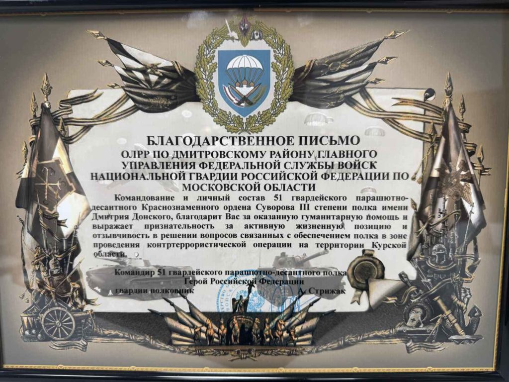 12 февраля в День создания подразделений государственного контроля и лицензионно-разрешительной работы Росгвардии в отделении лицензионно-разрешительной работы по Дмитровскому району Главного управления Росгвардии по Московской области подвели итоги работы за 2025 год и поздравили личный состав с 57-ой годовщиной со дня создания подразделений государственного контроля и лицензионно-разрешительной работы войск национальной гвардии Российской Федерации. В преддверии праздника отделению лицензионно-разрешительной работы по Дмитровскому району Главного управления Росгвардии по Московской области была вручена благодарность от Командования 51-го гвардейского парашютно-десантного Краснознаменного ордена Суворова III степени полка имени Дмитрия Донского за оказанную гуманитарную помощь, активную жизненную позицию и отзывчивость в решении вопросов связанных с обеспечением полка в зоне проведения контртеррористической операции на территории Курской области.