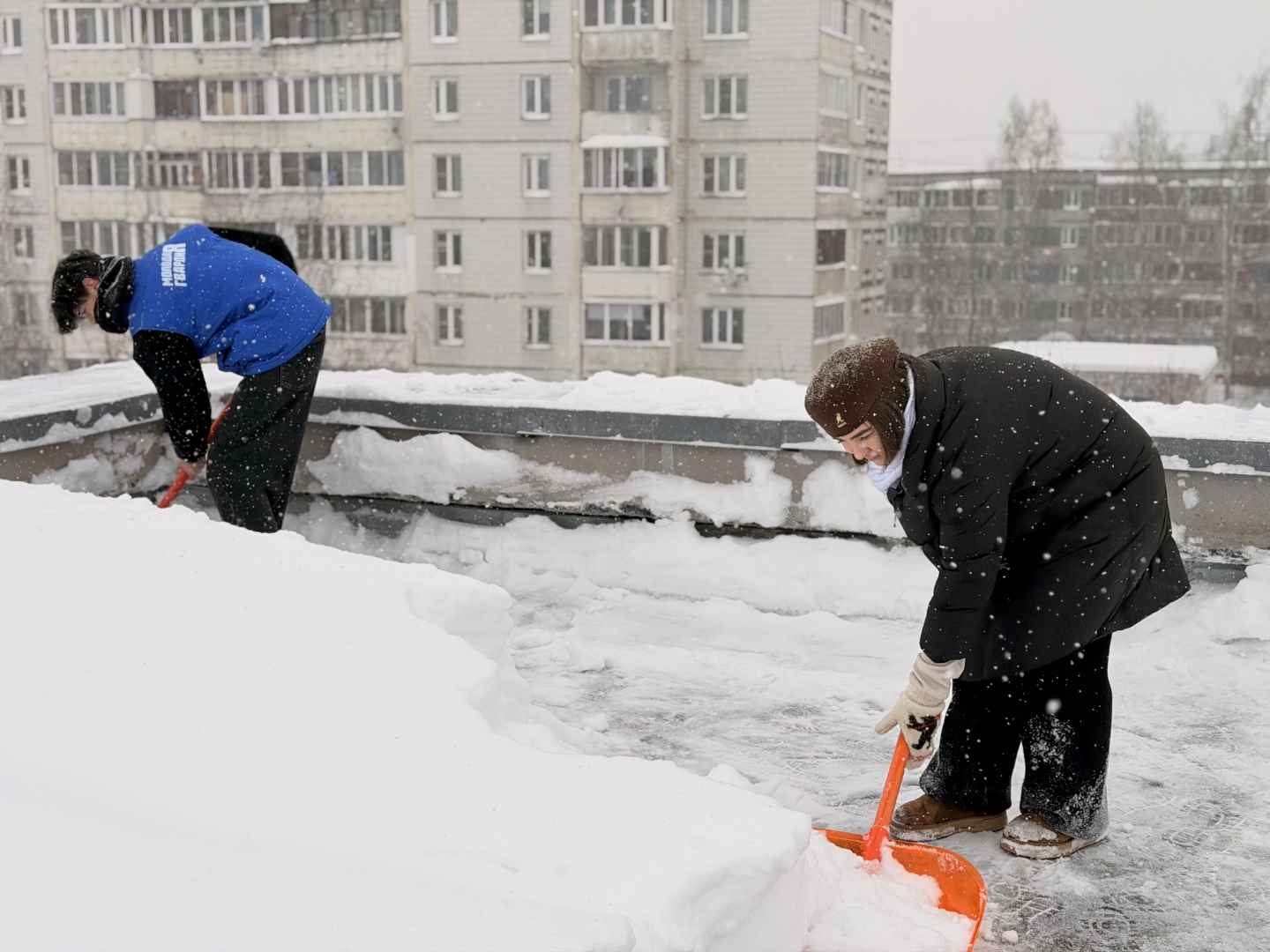 Совместными усилиями добровольцы расчистили ливневые стоки и вентиляционные отверстия на крыше здания, предотвратив возможные подтопления.