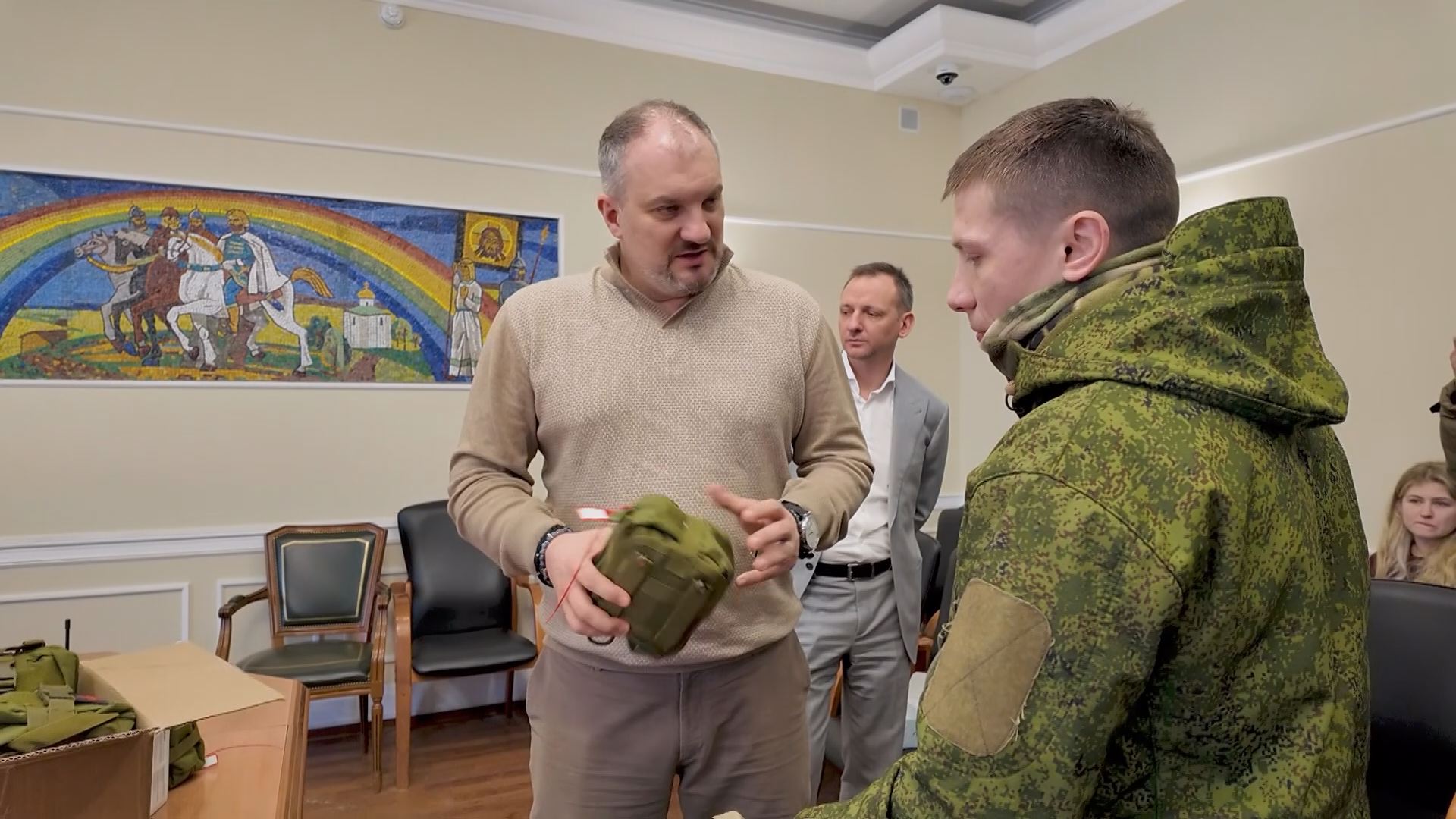 Будучи в отпуске боец с позывным «Тима» встретился не только с семьей, но и с главой округа Михаилом Шуваловым. Дмитровчан обратился с просьбой помочь в приобретении всего необходимого для него и его боевых товарищей. И вот, адресная помощь получена лично из рук главы.
