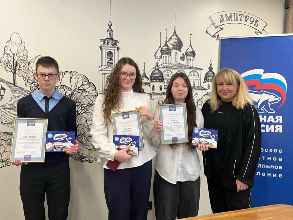 Торжественная церемония награждения прошла в местной общественной приемной партии «Единая Россия». Руководитель местной общественной приемной Александра Нечай лично поздравила юных литераторов с победой. Победителям были вручены почетные грамоты от секретаря регионального отделения «Единой России» ИгоряБрынцалова и сладкие подарки.