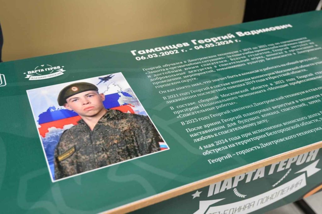 К 23 февраля в Дмитровском техникуме в рамках партийного проекта «Новая школа» состоялось торжественное открытие «Парты Героя». Памятная парта посвящена выпускнику учреждения Георгию Гаманцеву, который ценой своей жизни спас боевого товарища.