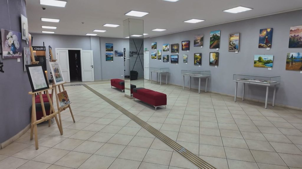 В выставочном зале Дмитровской центральной библиотеки собраны все направления, в которых работает художник: пейзажи, натюрморты и анималистические работы.