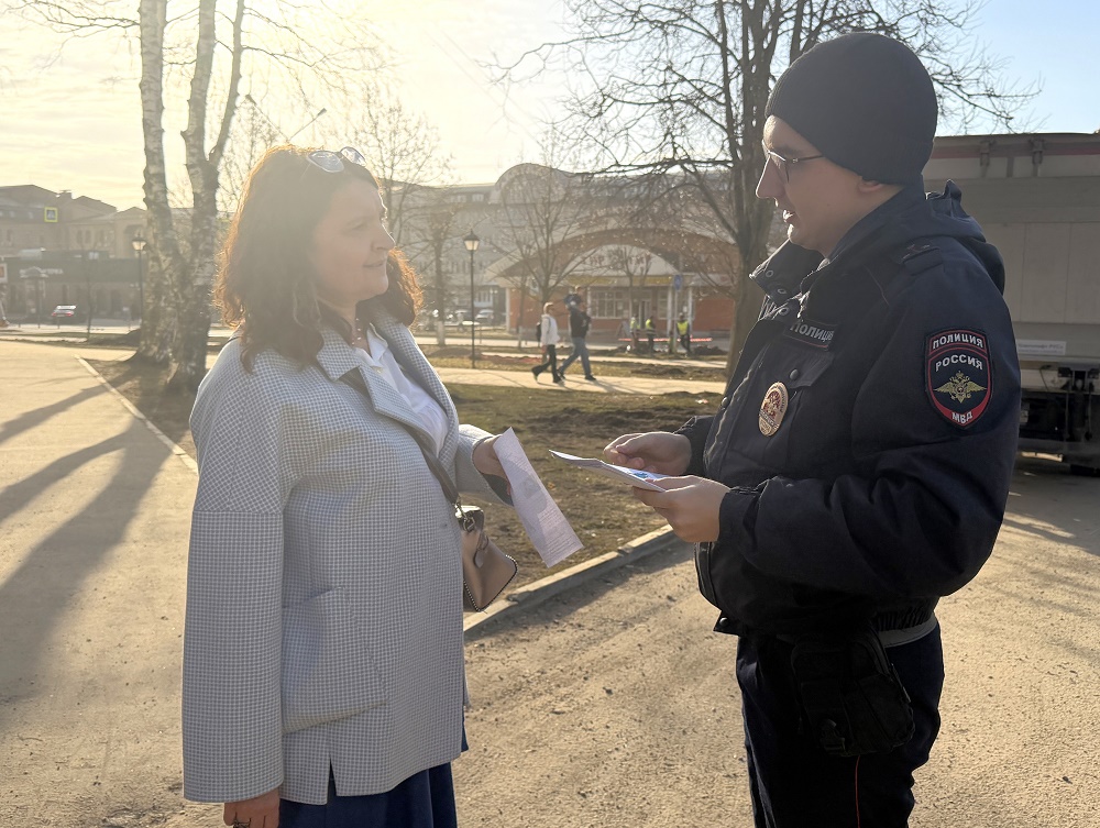 Сотрудник полиции раздал участникам акции тематические памятки и напомнил, что при возникновении подозрений на мошенничество необходимо прервать разговор и обратиться в Дежурную часть полиции.