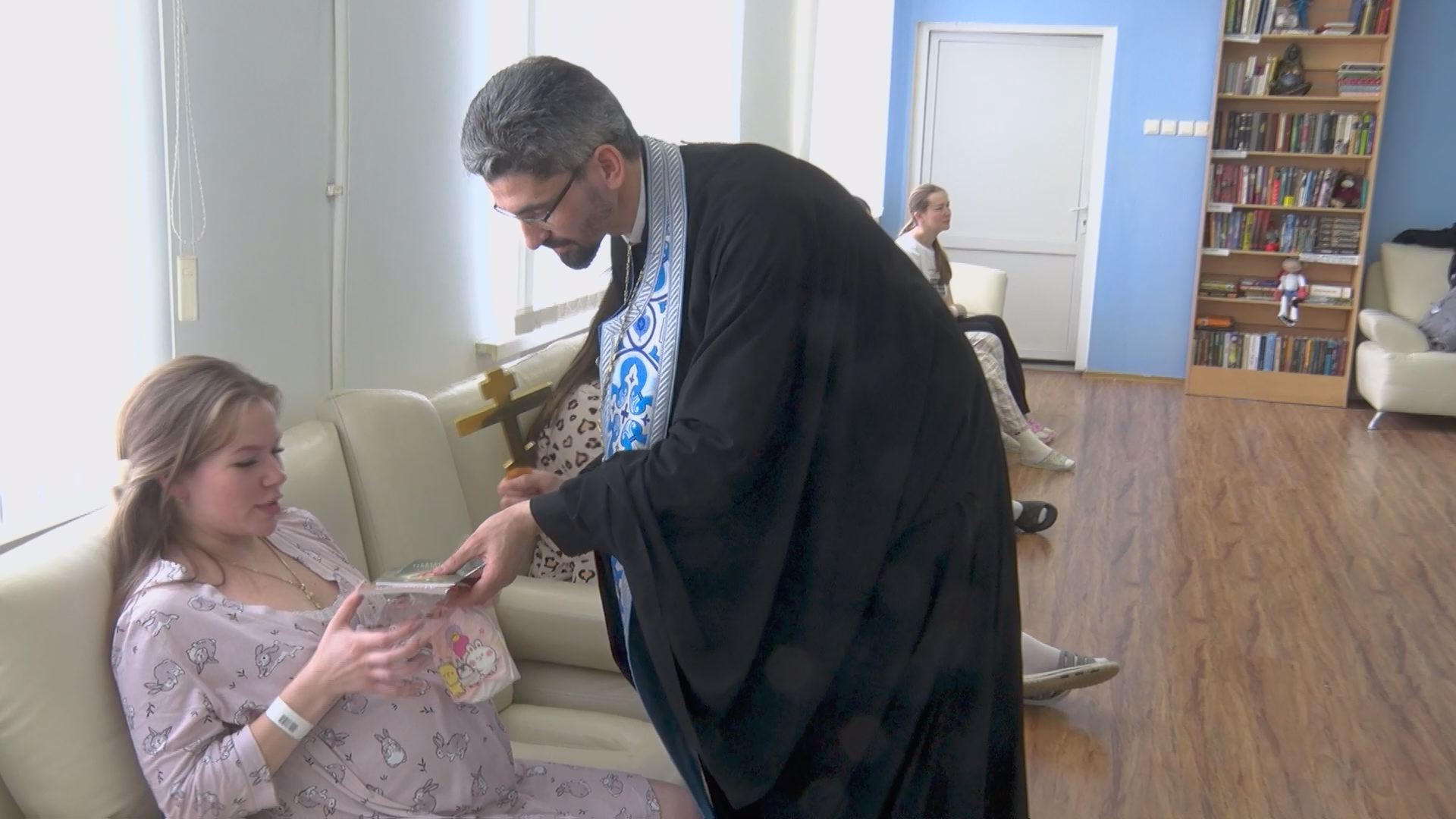 Святой отец Артемий рассказал об истории праздника, затем будущие мамы написали записки о здравии родных и близких и все вместе помолились. Девушек окропили святой водой и после службы им торжественно вручили детские пинетки, сделанные прихожанами, акафист и икону Божией Матери «Помощница в родах», которую они смело смогут взять с собой и попросить о помощи в самый важный и ответственный день.