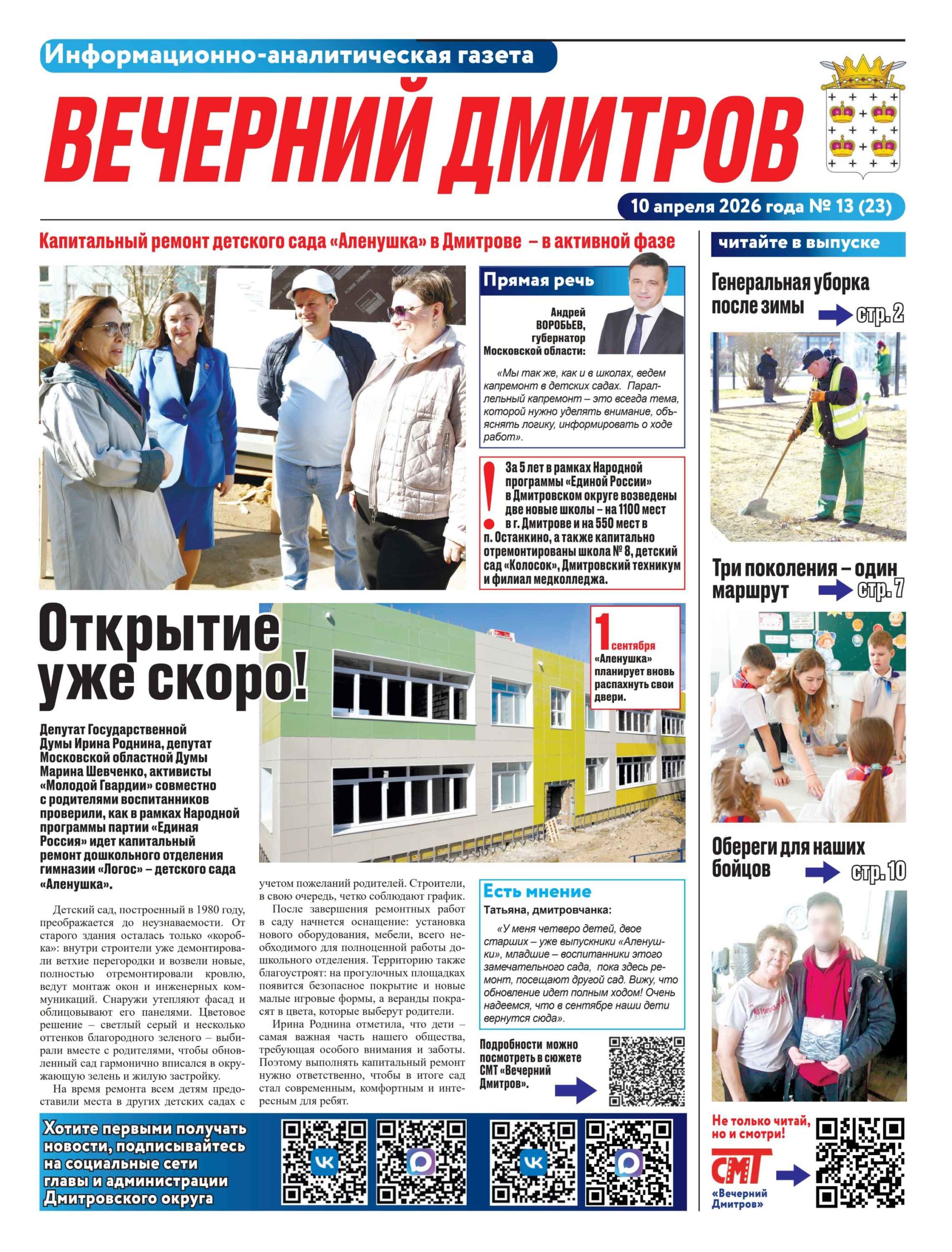 Главная страница » «Вечерний Дмитров» Выпуск № 23 от 10 апреля 2026г.